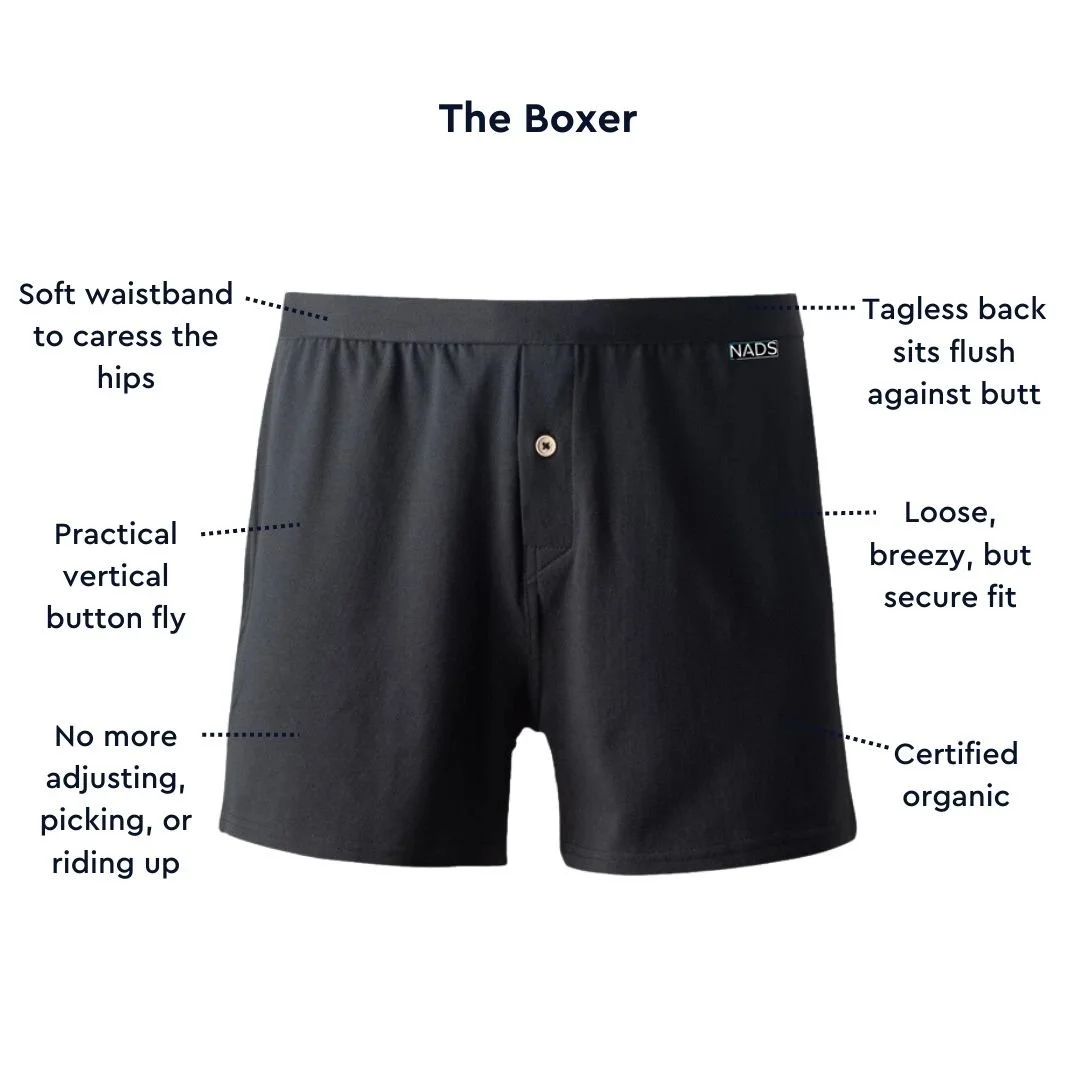 So, how can you get your hands on them? NADS come in two styles — boxers and boxer briefs. The guys have perfected the fit and feel, ensuring they are soft and comfortable for all-day wear, and lightweight enough to workout in* without bunching or riding up. The look is sleek black for a minimalist aesthetic (p.s., they just launched the briefs in navy). Guys, definitely a step up from the other options on the market!